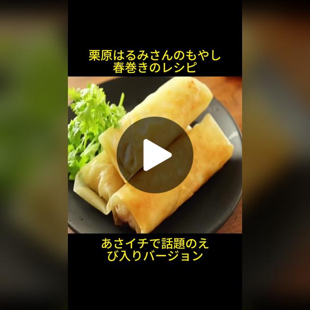 栗原はるみさんのもやし春巻きのレシピ あさイチで話題のえび入りバージョン。ビールと相性抜群! - YouTube。