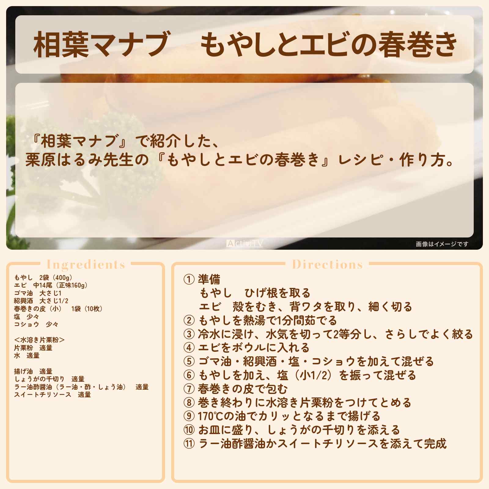 相葉マナブ 栗原はるみ「もやしとエビの春巻き」の作り方知っ得レシピ。
