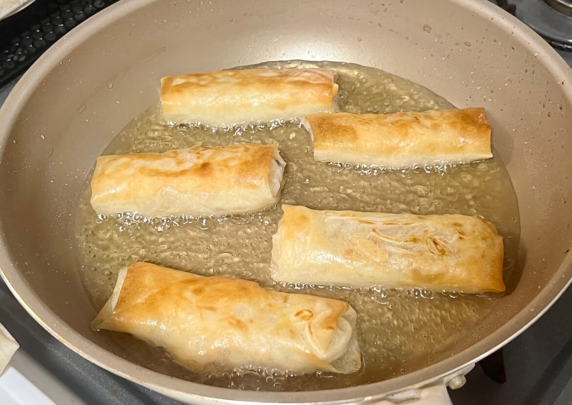 前回の相葉マナブで紹介されていた栗原はるみさんの「エビともやしの春巻き」に挑戦。3枚春巻き の皮が余ったので、冷蔵庫に残ってたカニカマとチーズを入れたのも作る。こっちの方が個人的には美味しかったですが、まずまずの出来でした👌。