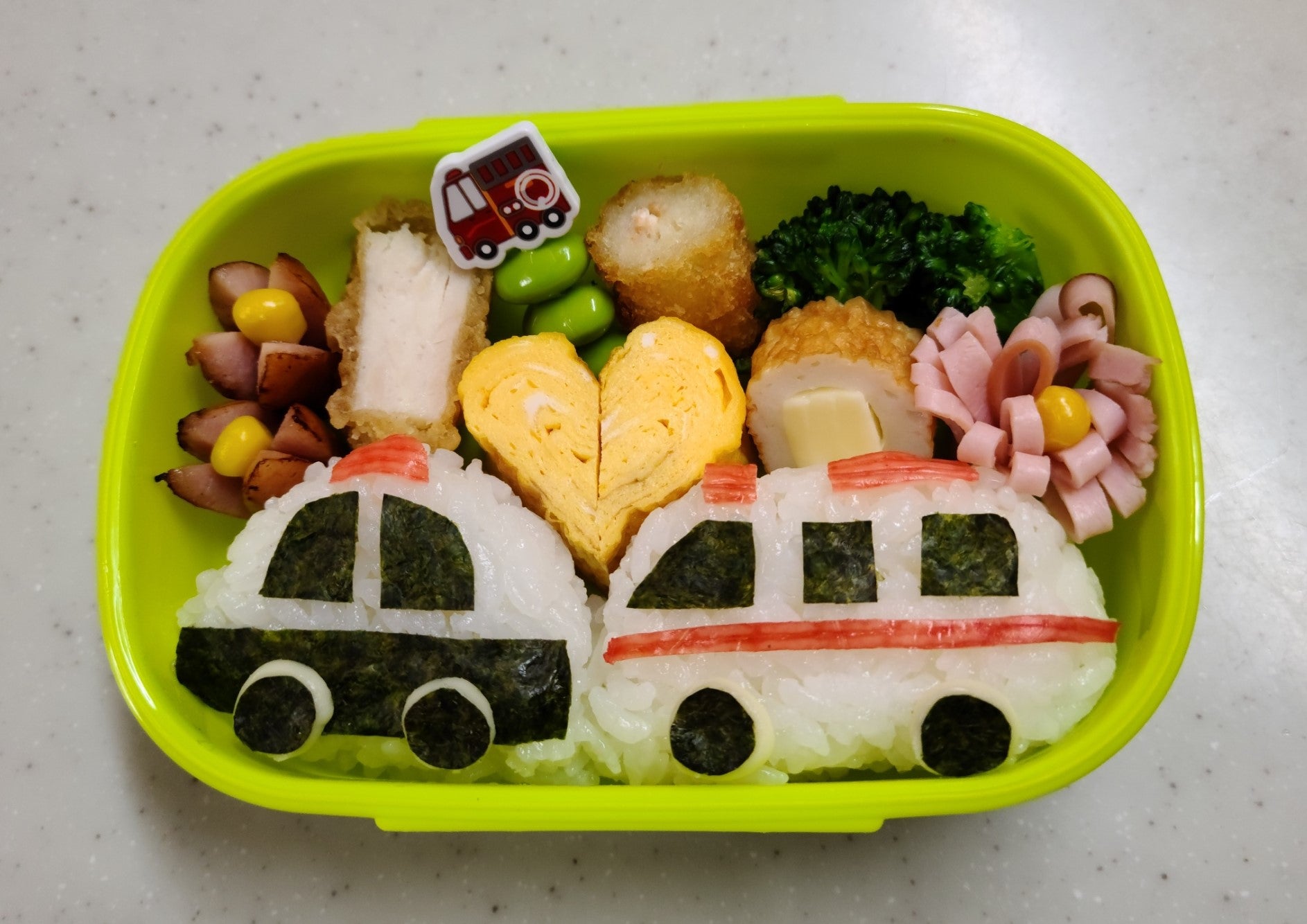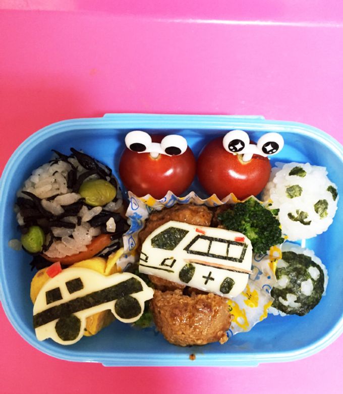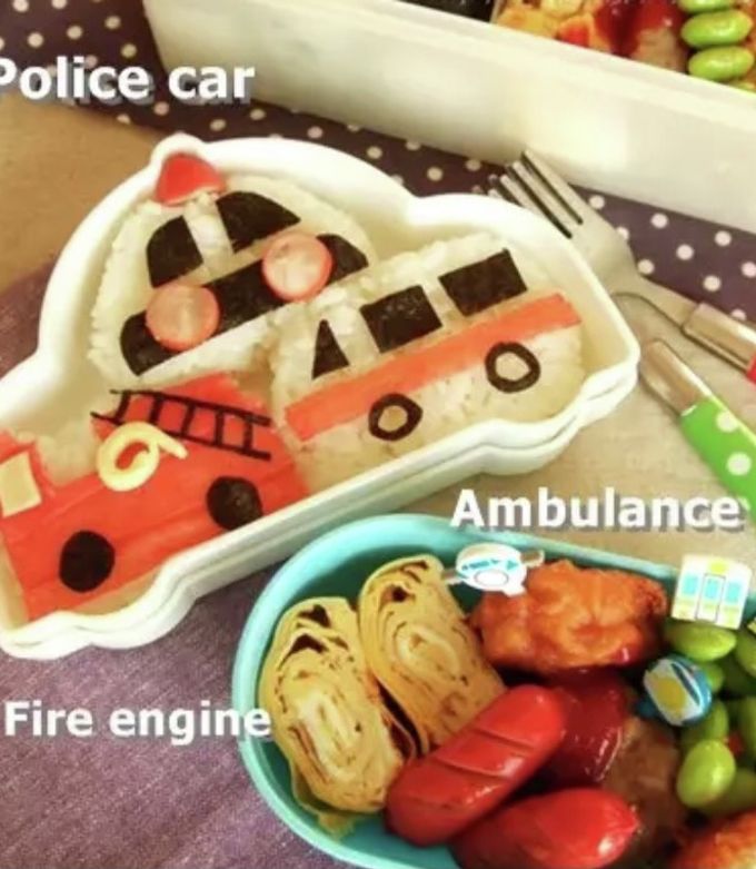 料理 トミカのパトカーや消防車のお弁当を作ってピクニック♪はたらくくるまのおにぎりでキャラ弁!キッズでも作れる♪キッチンおままごと・子供向け知育教育★サンサンキッズTV★。