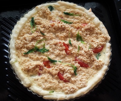 オートミール使用!時短で低糖質キッシュ!とろけるスモークサーモン&クリームチーズのキッシュ。