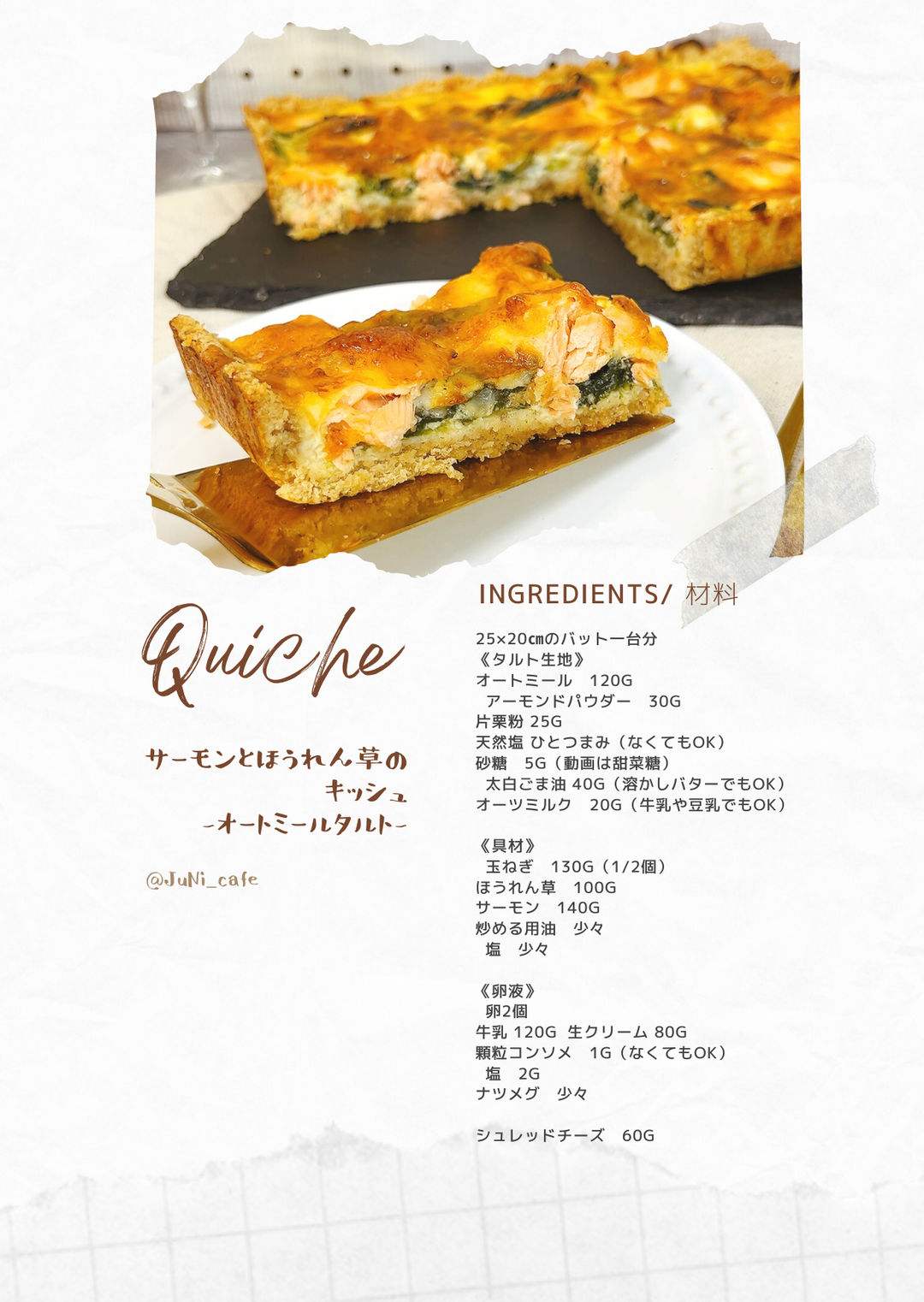 オートミールキッシュ ほうれん草とベーコンのキッシュ 動画レシピほっこりおうちごはん。