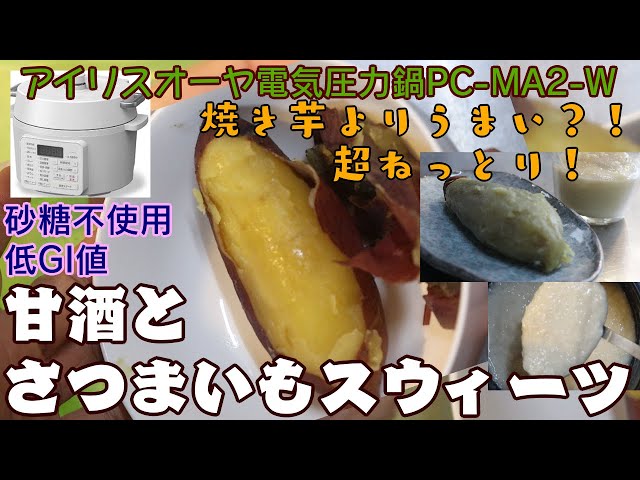 甘酒とサツマイモスイーツ編:ねっとり焼き芋越えアイリスオーヤマPC-MA2電気圧力鍋 の力恐るべし- YouTube。