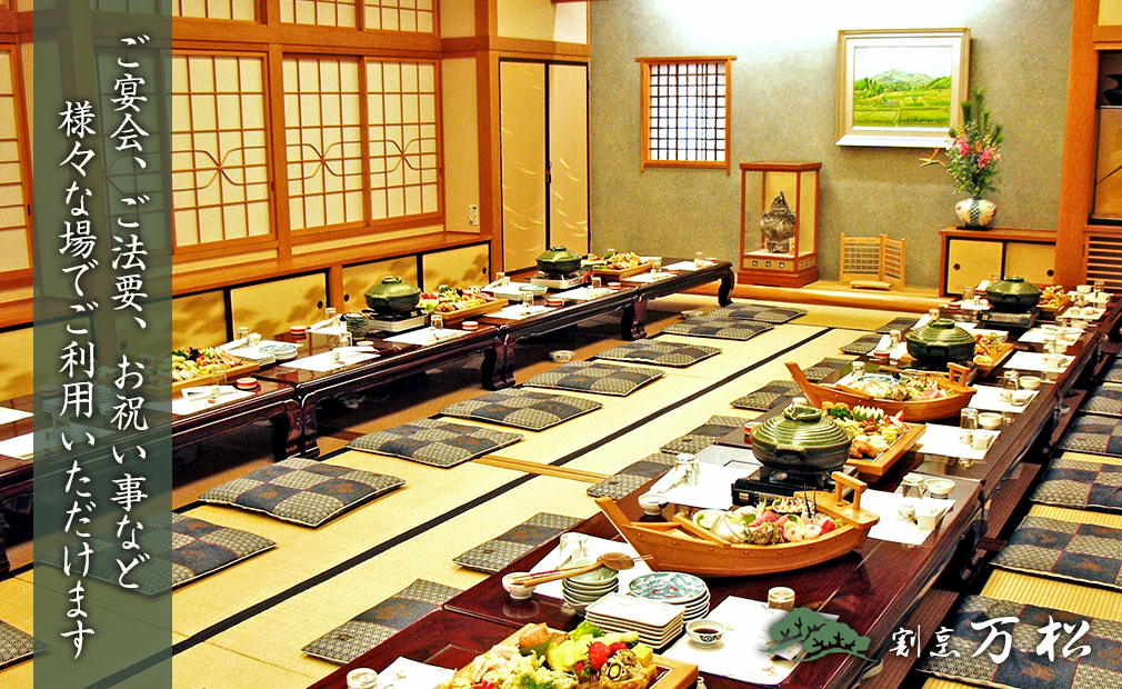 割烹万松 須賀川市 四季折々の会席料理や仕出し料理をはじめ、お弁当やオードブル、寿司、おせち料理など、厳選した食材から丹精込めて作り上げたお料理ご提供しております。