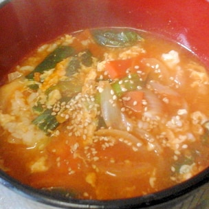 お豆腐キムチクッパ レンジで完成!包丁不要♡韓国風ごはん。