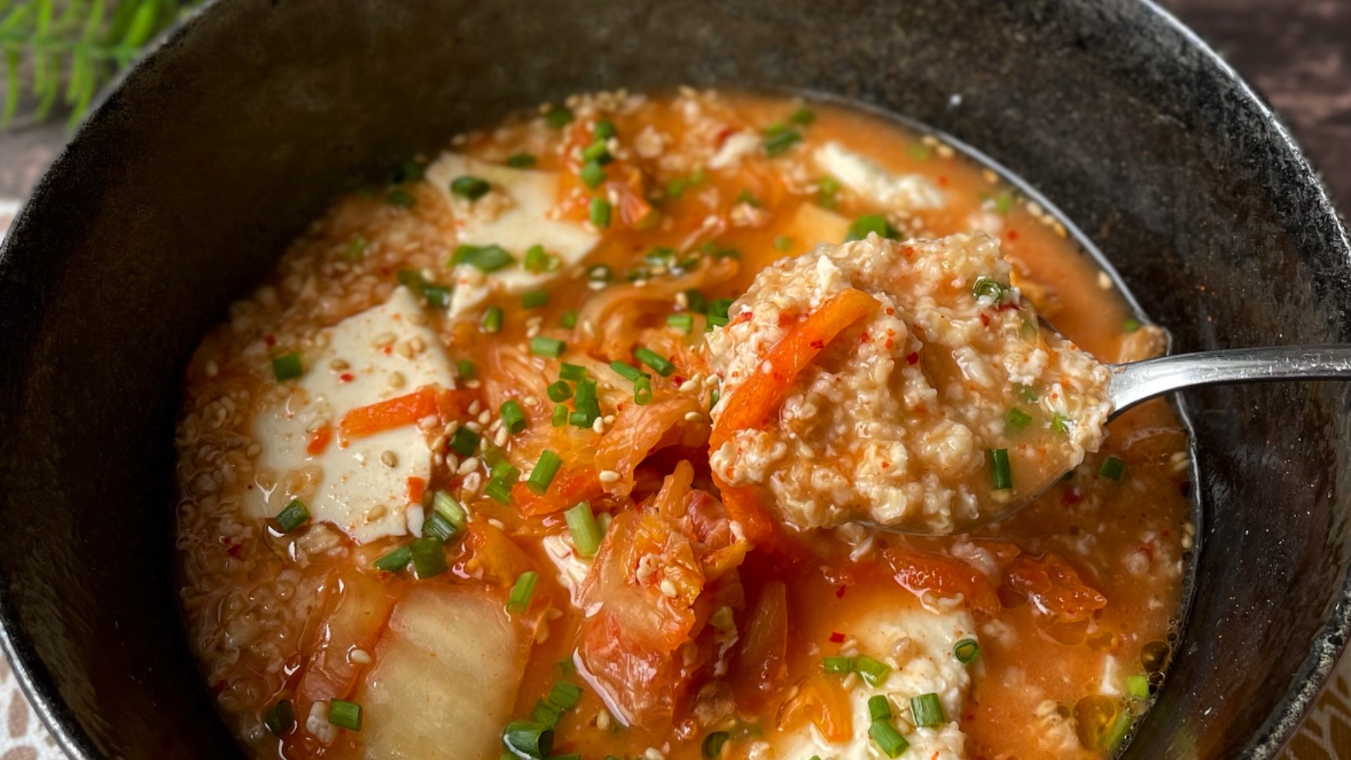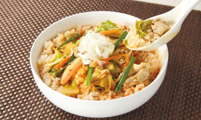 食欲そそる!もち麦入りキムチクッパおいしい大麦レシピおいしい大麦研究所。