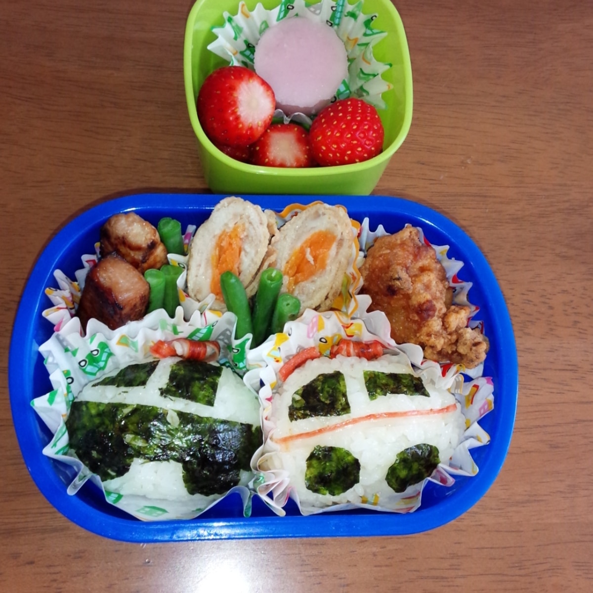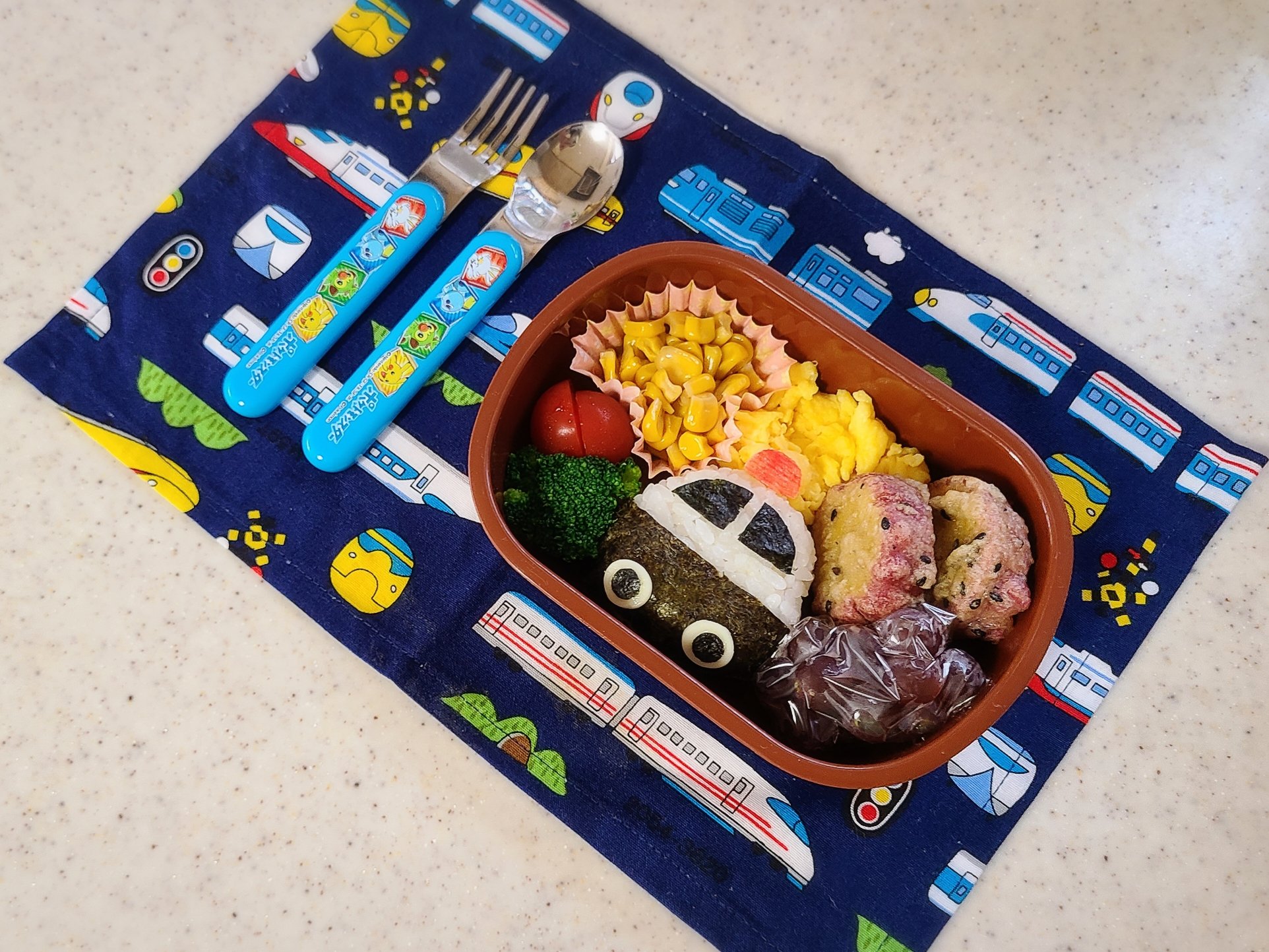 男の子向けのキャラ弁って何を作ればいいんだろう?と迷ったことはありませんか?,男の子に人気のモチーフ「車」を、キャラ弁初心者でもできる簡単な方法でおにぎりにしちゃいましょう!,お子さまに人気のミートボールと野菜のおかずは、フライパン1つで同時に作れます♪, 作ってくださったら、コメント欄に写真を載せて教えてくださいね😉,みなさんの投稿、いつも楽しみに見ています🌼,。