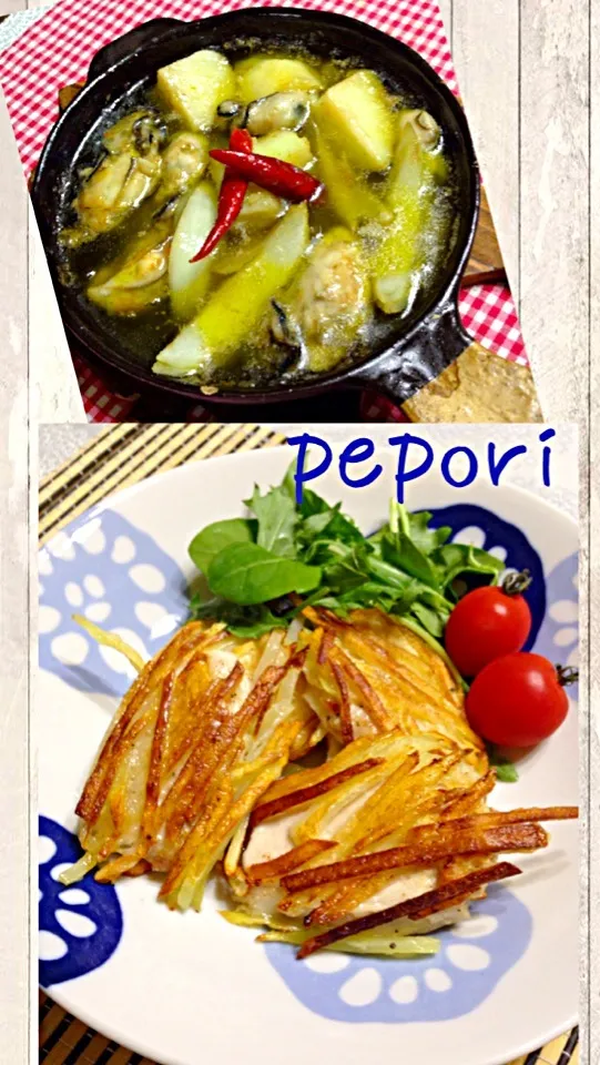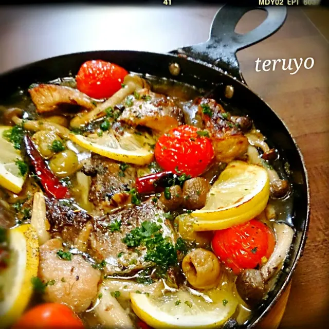 ☆鶏のアヒージョオイル焼き&ダーリン失敗の牛肉☆ダーリンのつま ダーリンの胃ぶくろ喜ぶ毎日料理。