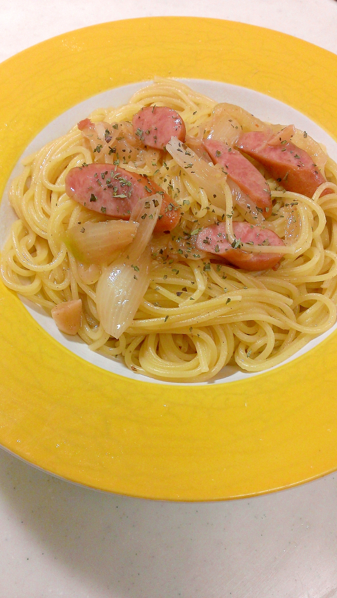 残ったアヒージョオイルで♡チョリソーのトマトパスタ。