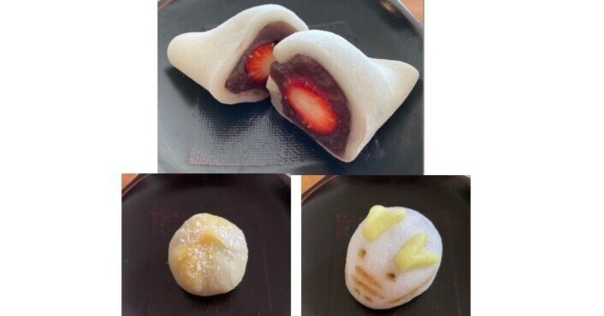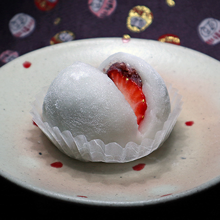 冬の上生菓子香川県高松市の夢菓房たから名物いちご大福と季節のフルーツ大福・和菓子。