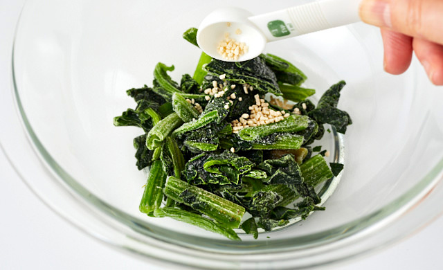 凍ったまま和えるだけ② 冷凍ほうれん草の「ごま和え」。