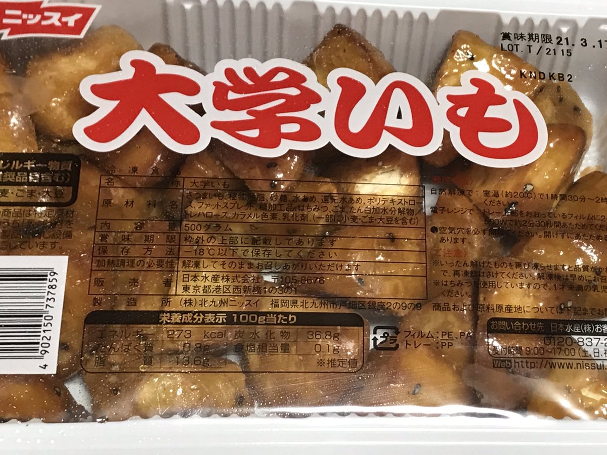 業務スーパー 冷凍ニチレイ 大学いも500g 北九州ニチレイ業務スーパーの商品をレポートするブログ。