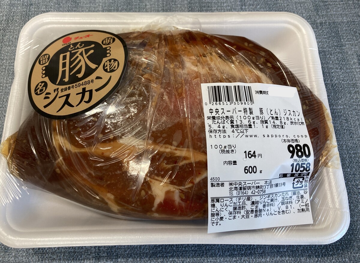 chikko☻ on X: "豚ジスカン🐖食べ応え抜群👍 留萌管内の中央スーパー特製。 鶏肉バージョン🐓も人気らしい。 もちろんジンギスカン🐏もあります。チューオー中央スーパー豚ジスカン特製味付け https:t.co bhRRYzkpxj"X。