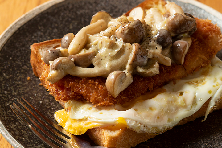 ハムチーズカツのおたまさん、きのこのソース - ミヨシ油脂株式会社。