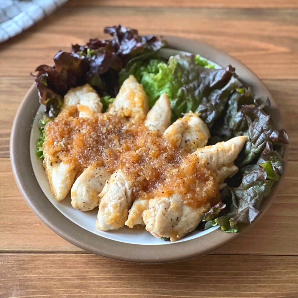ガツンとごはんがすすむ。ささみのガリバタステーキ 簡単・節約。