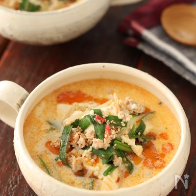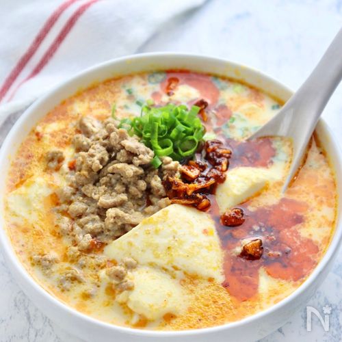 包丁なしで簡単!満腹ヘルシー「濃厚お豆腐担々スープ」。