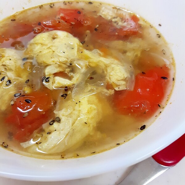 簡単ヘルシー ^^ トマトと黒ゴマのかき玉スープ♪。