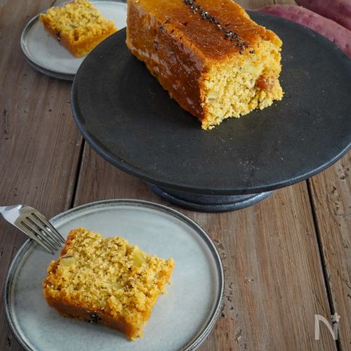 簡単 小麦粉バターなしさつまいもオートミールパウンドケーキ。