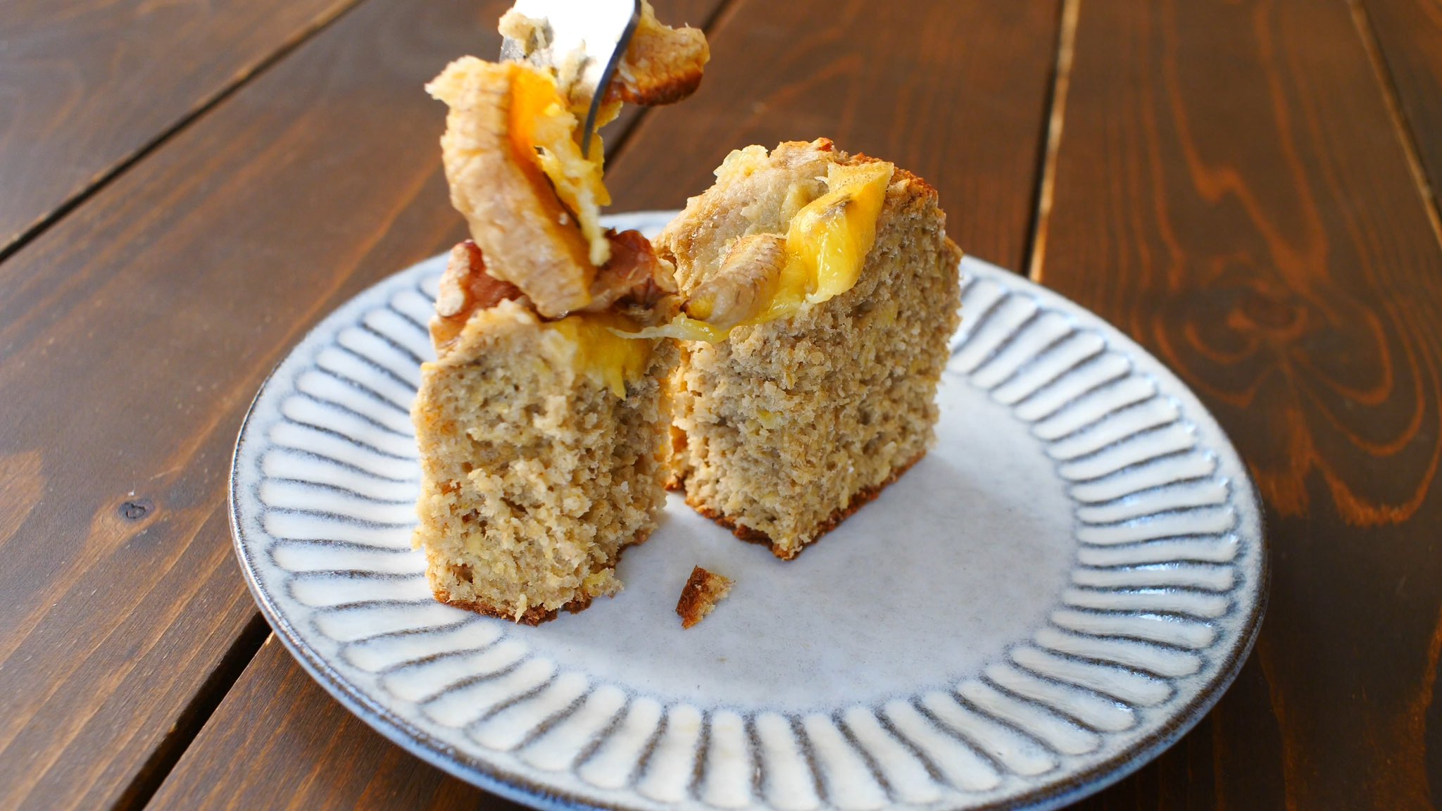 簡単ヘルシー!米粉とオートミールのバナナケーキ🍌 バター不使用。