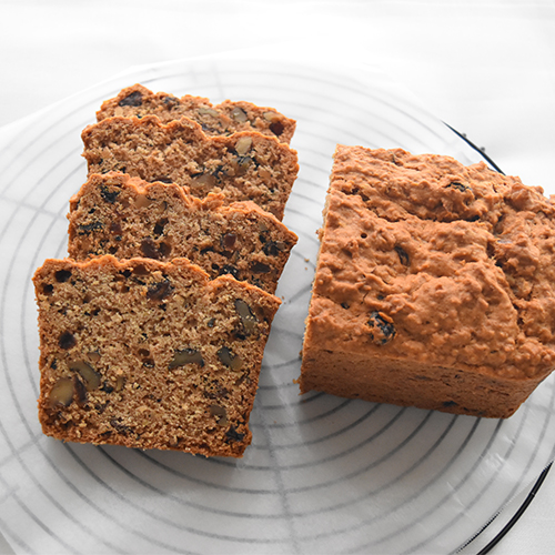 オイル不使用 オートミールでキャラメルナッツバナナブレッド。