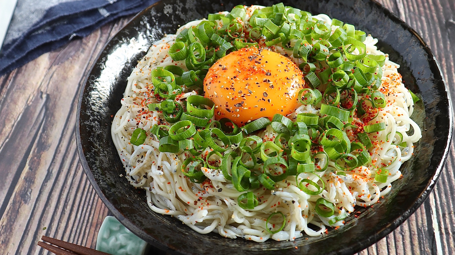 夏の無限レシピ!塩油そうめん,材料 , そうめん1束, 塩こさじ1 4, 鶏がらスープの素小さじ半分, 黒胡椒適量, ごま油小さじ1,にんにくチューブ1㎝, ネギ適量, 白ごま適量, 卵黄1個,作り方 , ①そうめんを茹でて冷水で冷やして水気を切る,②そうめんに塩、鶏がらスープの素、ごま油、にんにくチューブを混ぜる,。