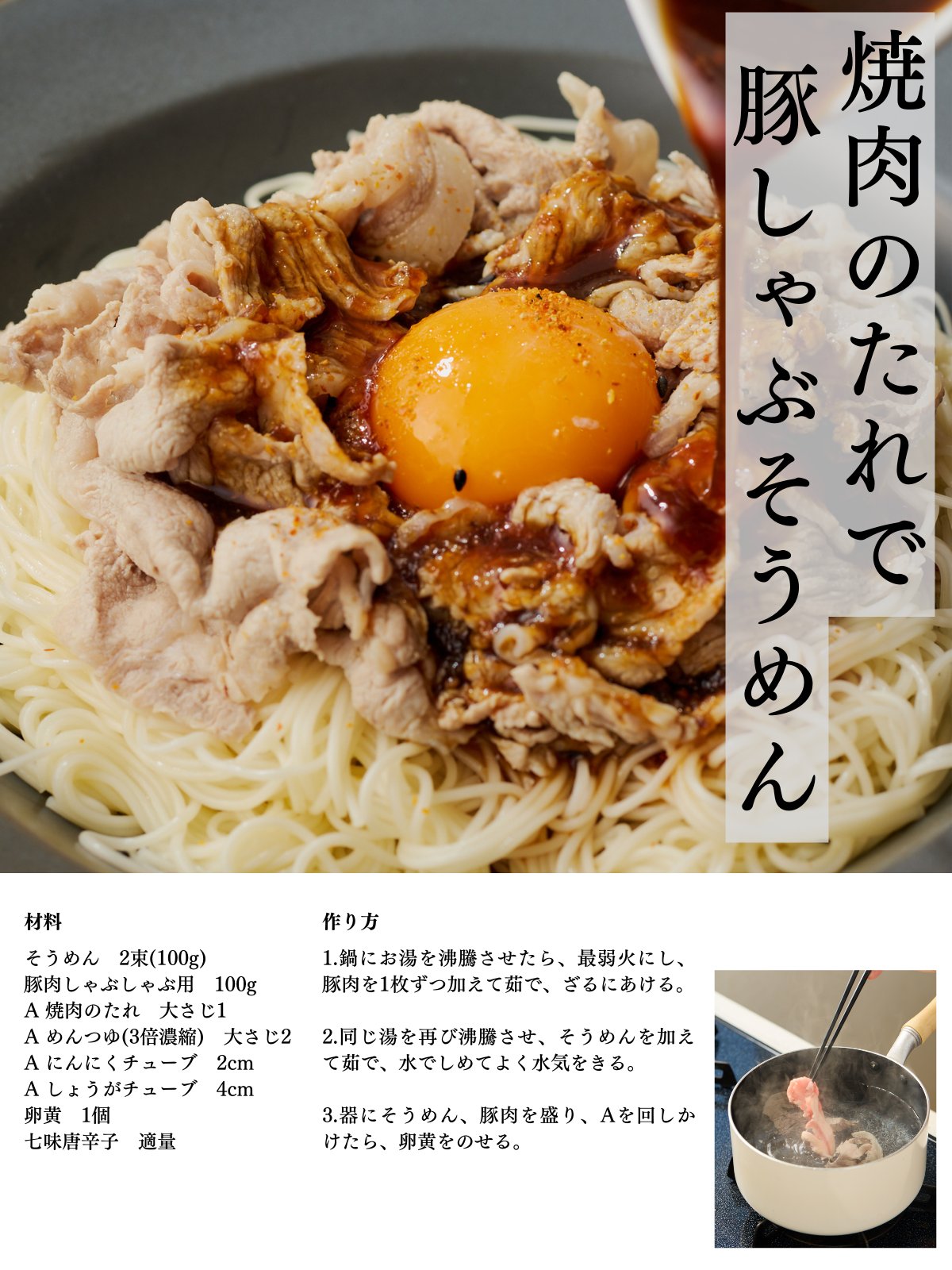 ジョーさん。 料理研究家on X: "まだそうめん食べてる人いる?いるよね? めんつゆに焼肉のタレとにんにく&しょうがチューブ を加えて混ぜたタレが凄くそうめんと豚しゃぶに合う。卵黄絡めたらもっと良いです。 https:t.co 2nRZJAiT7D"X。