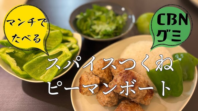 CBNグミ×マンチ飯 スパイスつくねのピーマンボートが天才だった - YouTube。