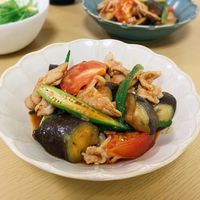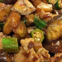 『豚なすオクラのコクうま中華炒め』生姜にんにくで食欲そそる♫。