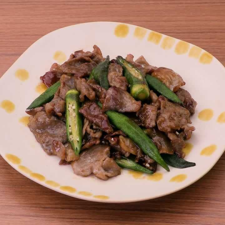 簡単♪豚こまとおくらのスタミナ炒め にんにく香る甘辛だれ◎。