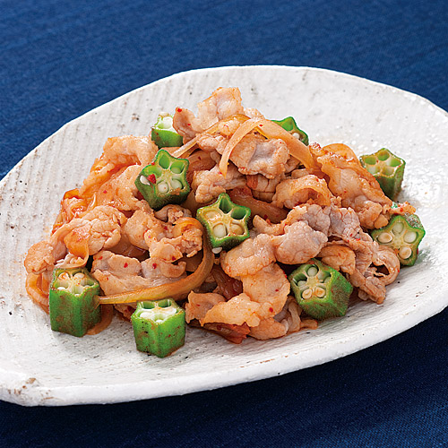 七夕オクラ入り豚キムチ炒め - おすすめレシピダイエー食の情報。
