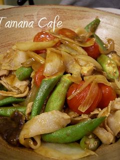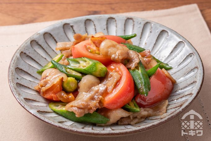 トマトとオクラの豚バラ炒めトキワさん家のキッチン。