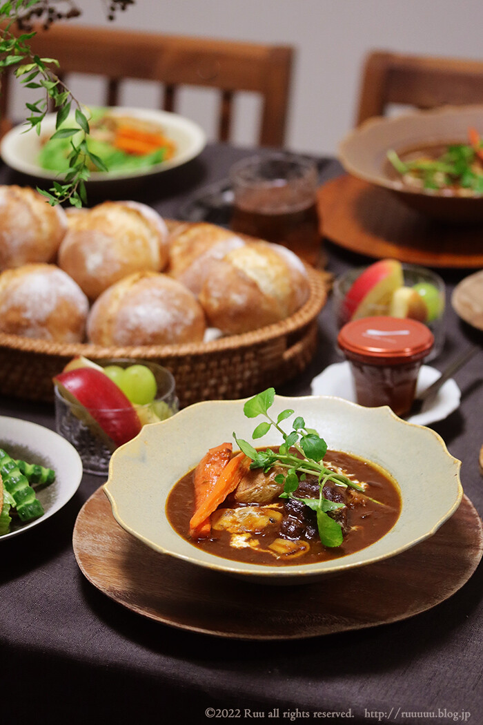 献立 ビーフシチューとバゲットと。~バゲットを基調とした晩ご飯 毎年恒例のヤツ ~ : るぅのおいしいうちごはん Powered by ライブドアブログ。