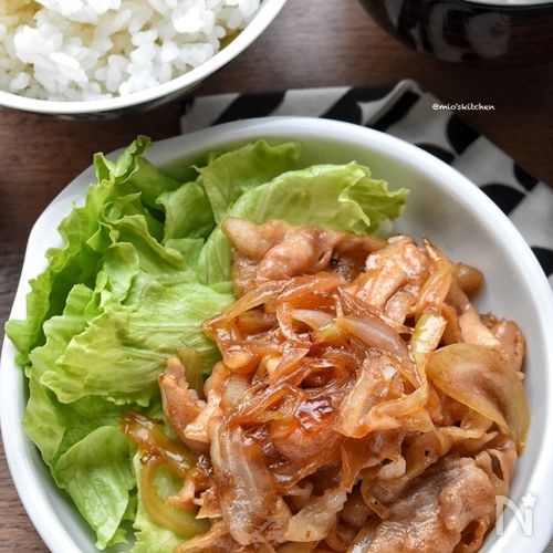 shiori ⌇時短・簡単レシピ 𐩢𐩺@shiori_5110 肉巻き玉ねぎの生姜焼き ﹋﹋﹋﹋﹋﹋﹋﹋﹋﹋﹋﹋﹋﹋﹋﹋﹋﹋ 🍚▶︎主菜⏰▶︎15分 NadiaレシピID:481277Instagram。