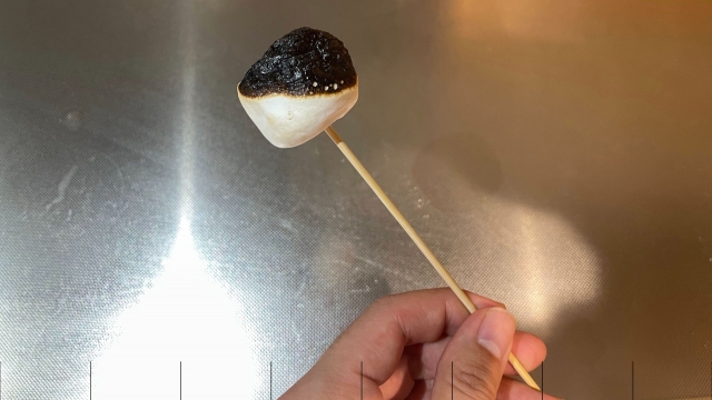 焼きマシュマロを引っ張ると・!Stretchy Roasted Marshmallow。