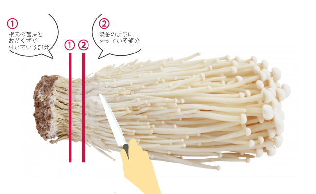 えのきの石づきはどこまで切り落とせばいいの!?食宣伝。