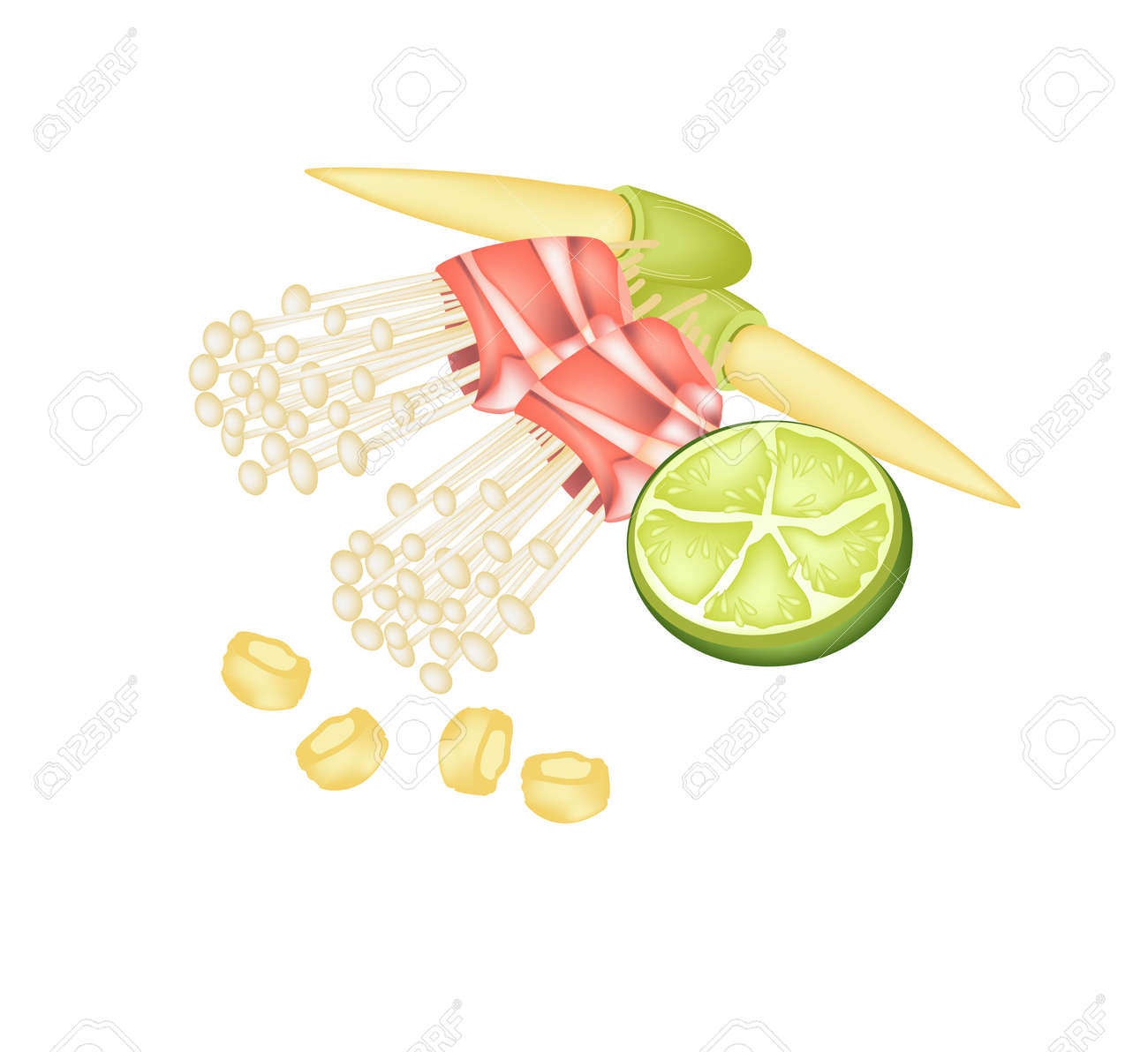 アジアの焼き鳥 きのこのえのきとベーコンを串に刺しアジアのファーストフードやテイクアウトレストランにベクターイラスト - えのきだけのベクターアート素材 や画像を多数ご用意 - iStock。