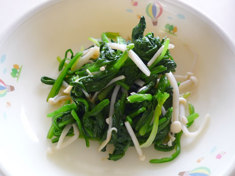 あゆみこども園:給食のレシピ:2012年10月 ほうれん草とえのき茸のおひたし。