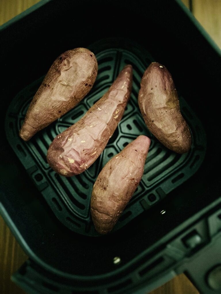 油を使わないで調理ができるエアフライヤーで、さつまいもを簡単にホクホクの焼き芋に!モケットリーフ。