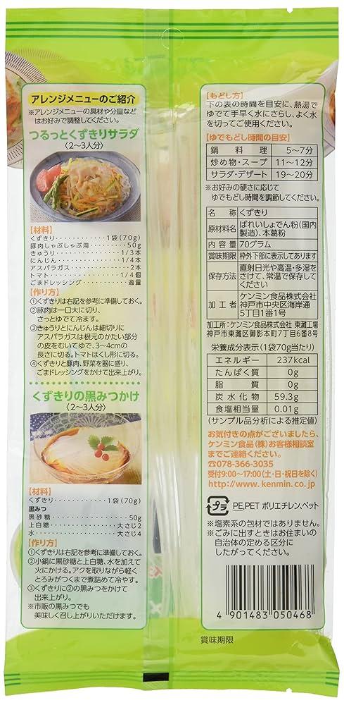 Amazon.co.jp: ケンミン食品 国産 くずきり ストレートタイプ 70g ×15個 : 食品・飲料・お酒。