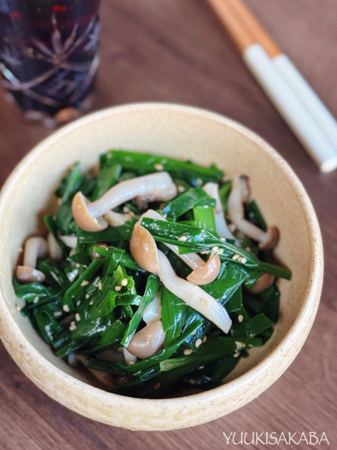 すぐできる!忙しい日にあと一品♪さっぱりヘルシー♡体に優しい副菜『ニラとキノコの簡単和え』レシピゆうき酒場。