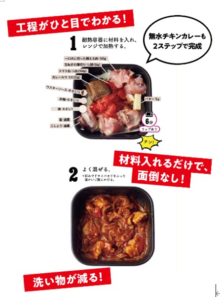 リュウジ直伝! 無水チキンカレーが2ステップで作れる「至高のレンジ飯」 『至高のレンジ飯 面倒ぜんぶ省略!容器1つで感動レシピ100』BOOKウォッチ。