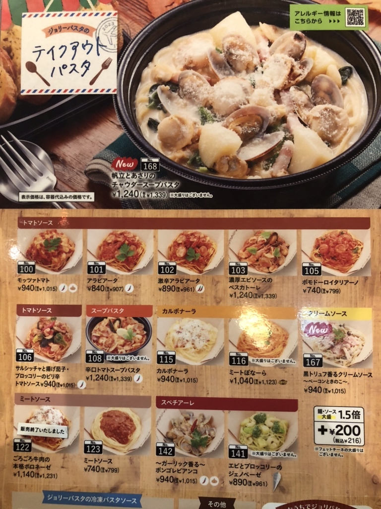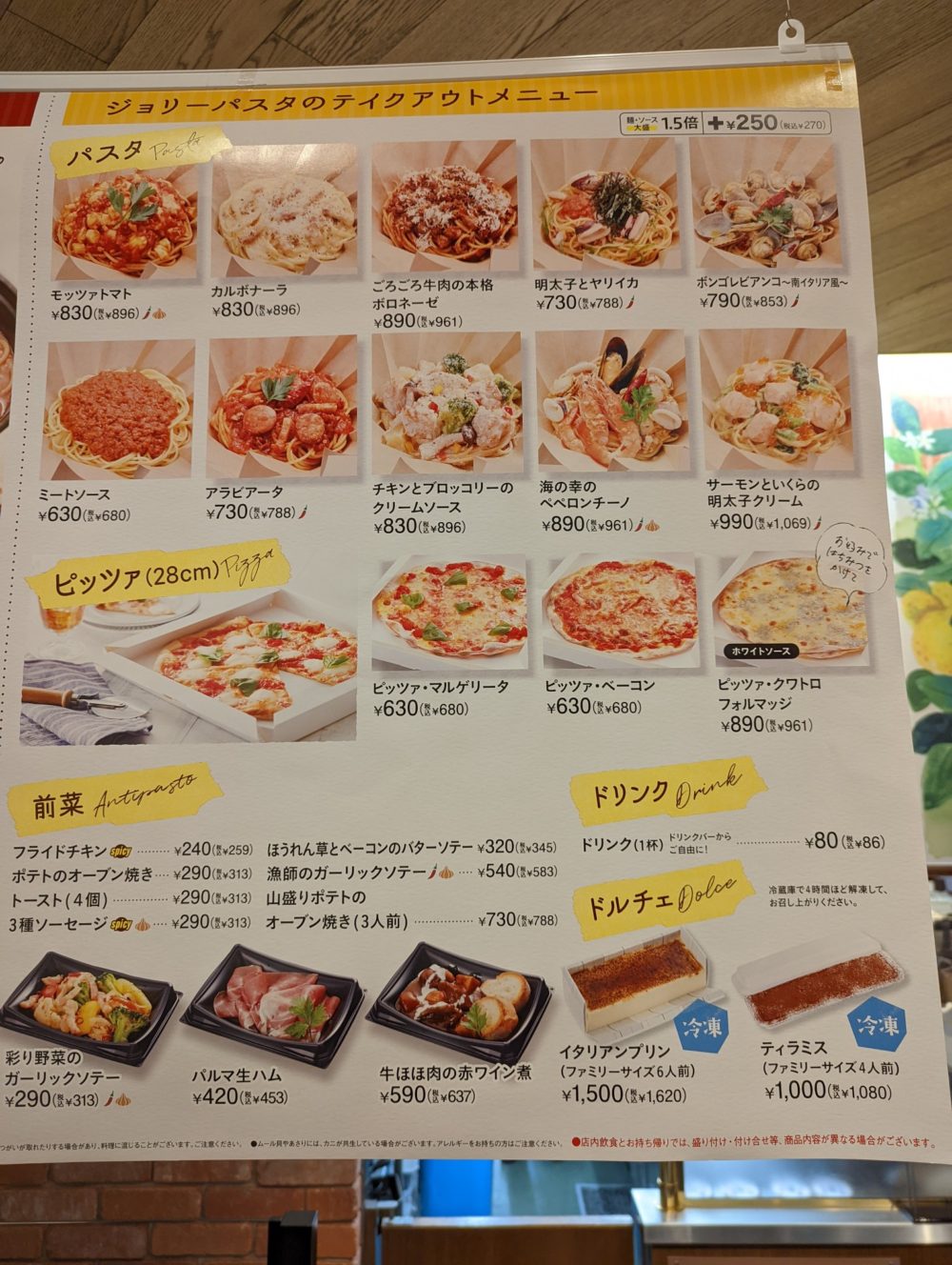 ジョリーパスタの持ち帰りメニューと注文方法について - 俺のようになれ。