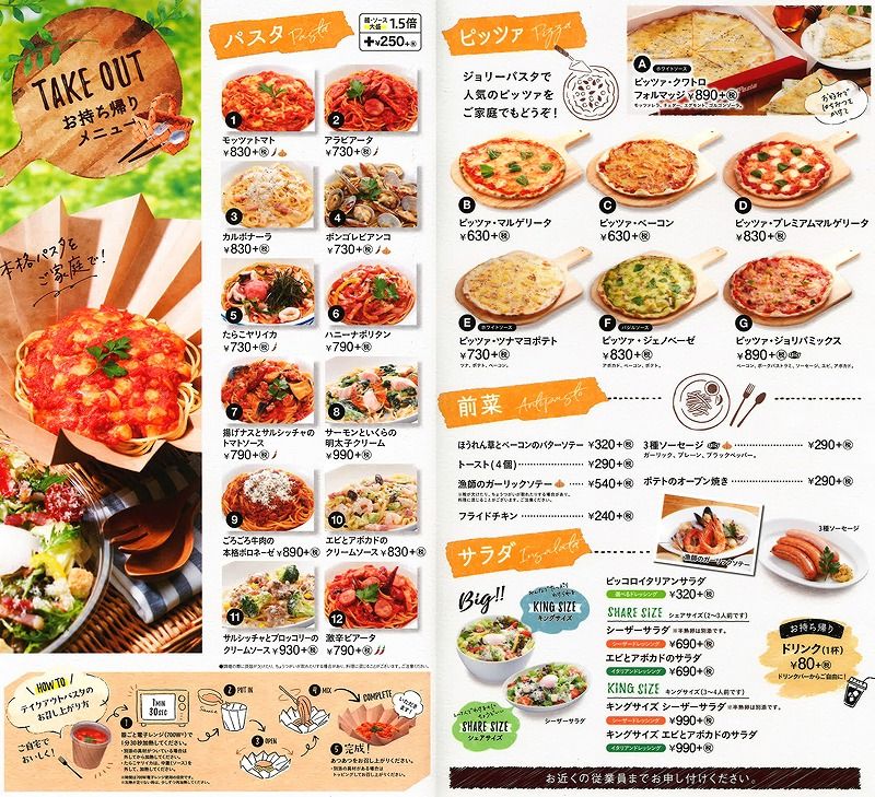 ジョリーパスタ テイクアウト 持ち帰り メニュー 2020最新版おうちで外食。