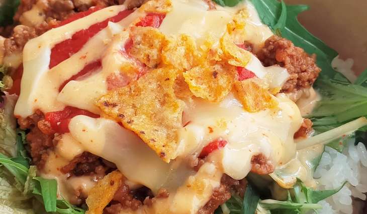 鹿児島県鹿屋市でタコライス屋さんを発見! KIWI SHAYNES TACO RICEさん。 タコライスをテイクアウトしました。ずっと前にどこかのカフェでタコライスを食べた時、ひき肉の臭みが気になって食わず嫌いになっていたんだけど、KIWI SHAYNES TACO RICEさん のタコライスは。