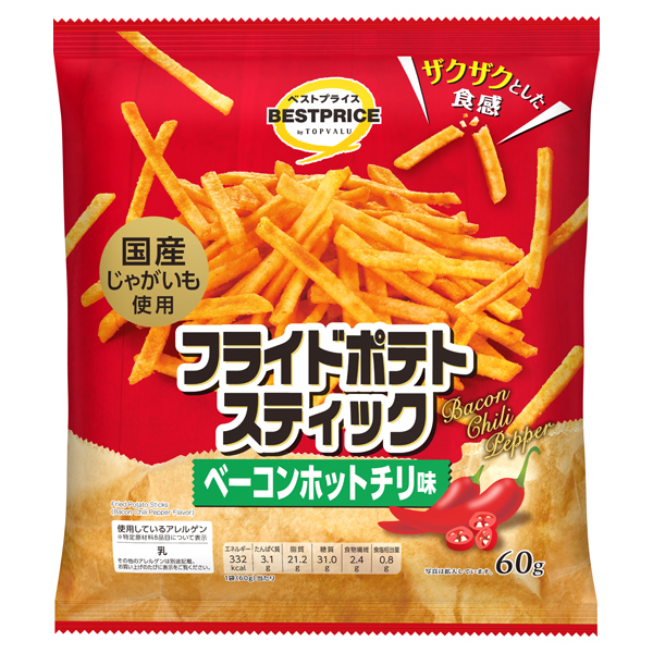 フライドポテトスティック ベーコンホットチリ味 -イオンのプライベートブランド TOPVALU トップバリュ- イオンのプライベートブランドTOPVALU トップバリュ。