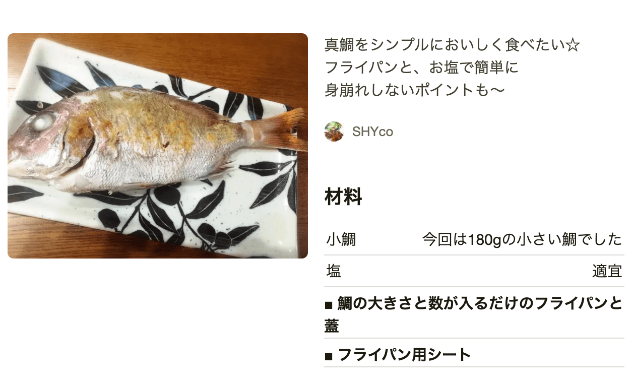 フライパンでおいしい☆鯛の塩焼き➕コツ by SHYcoクックパッド簡単おいしいみんなのレシピが392万品。