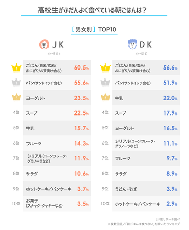 高校生の朝食、2位は「パン」 1位は? 空腹時の対処もLINEが調査 - BCN+R。