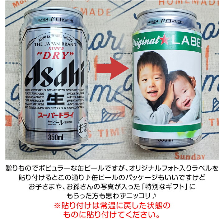 楽天市場LINEで簡単♪ 缶 ビール フォト ラベル 12枚入 年末 年始 写真入り プレゼント オリジナル シール 祝い お祝い グッズ 部活引退 卒業 卒団 還暦 誕生日 父の日 ギフト 名入れ お歳暮 結婚 記念日 引き出物 出産 内祝い 退職 転勤 子ども。