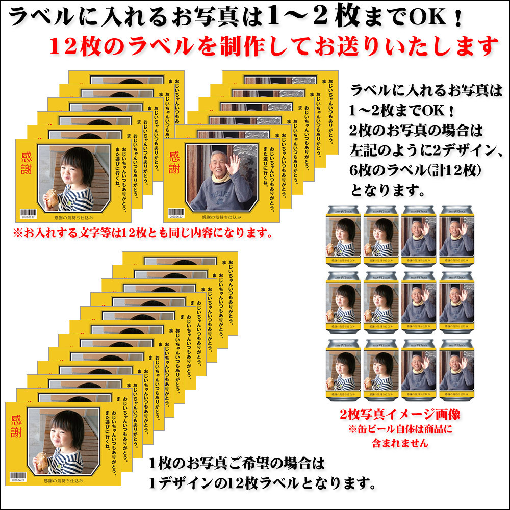 LINEで簡単♪ 缶 ビール フォト ラベル 12枚入 年末 年始 写真入り プレゼント オリジナル シール 祝い お祝い グッズ 部活 引退 卒業卒団 還暦 誕生日 父の日 ギフト 名入れ お歳暮 結婚 記念日 引き出物 出産 内祝い 退職 転勤 子ども 孫 写真 酒 記念品。