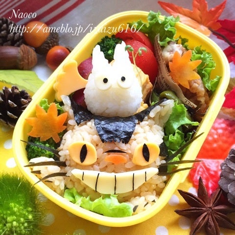 ネコバスと小トトロの秋 キャラ弁Naocoのキャラ弁日記。